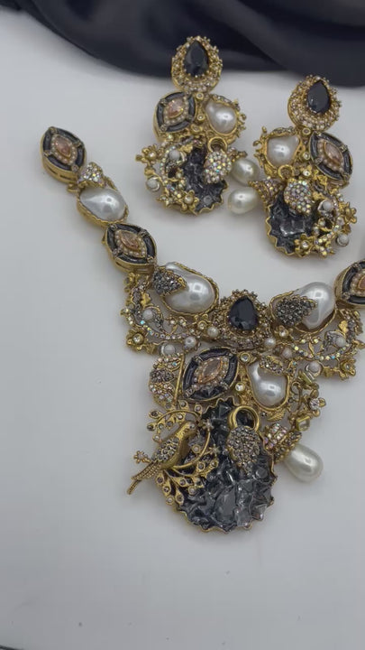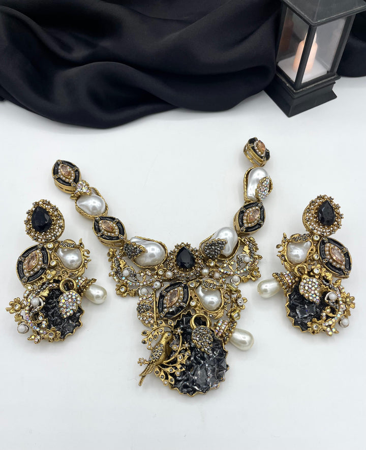 Turkish with mop stones Designer party wear neck piece With long earigns