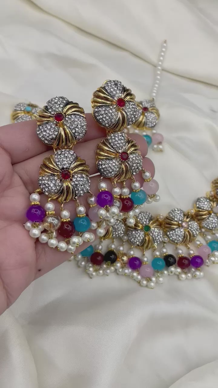 Oxidized gold plated chokar Comes with Dori at the back Earigns are clip locked