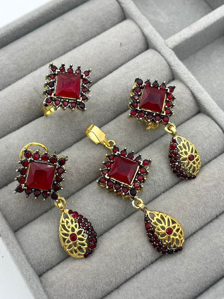 Oxidized pendant set Ring is adjustable Clip Lock studs With chain