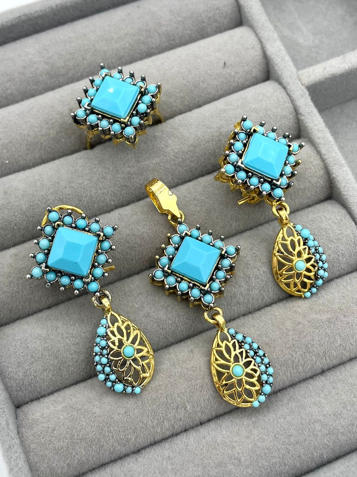Oxidized pendant set Adjustable ring Clip Lock studs With chain