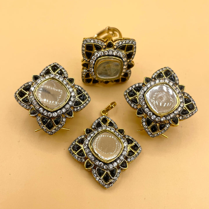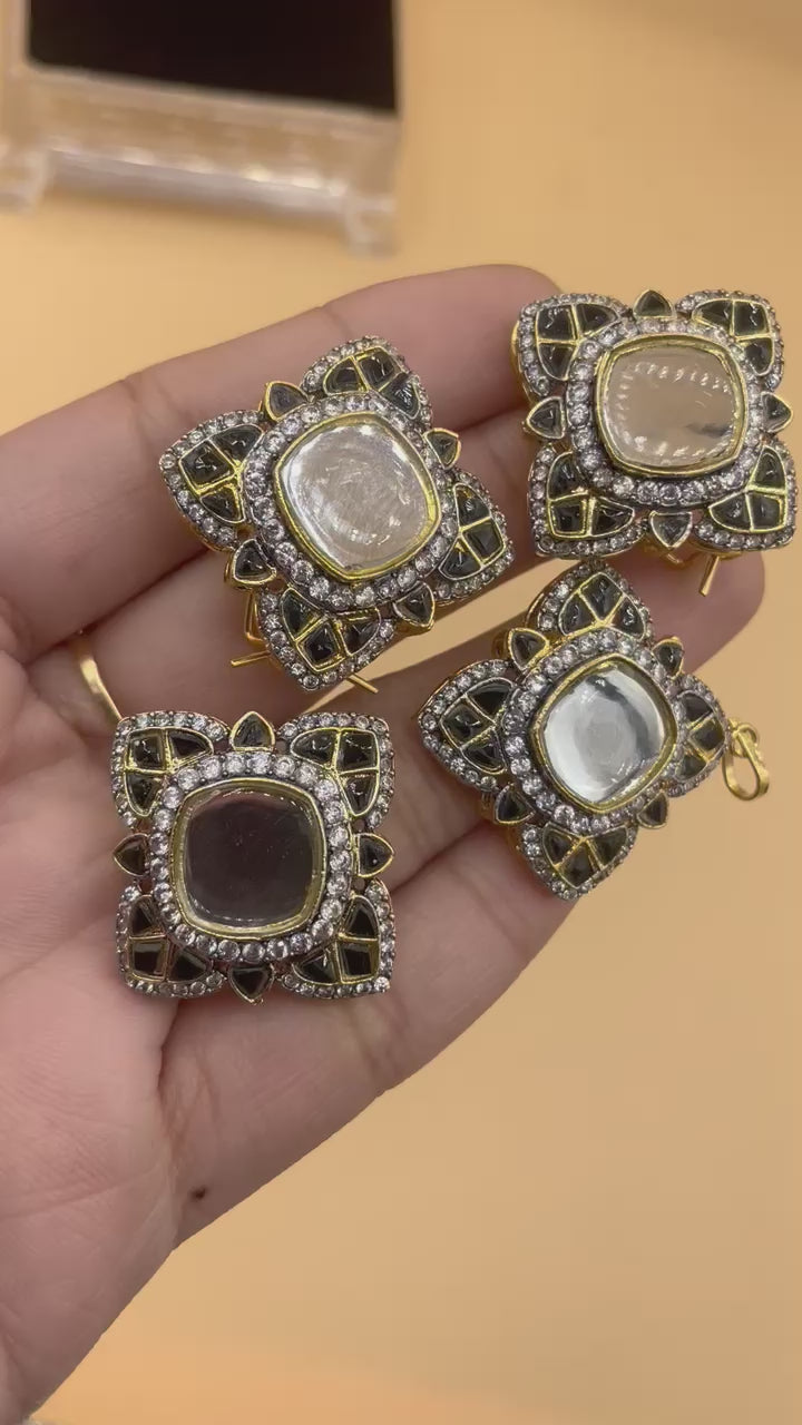 Hand made Kundun Over sized combo set with adjustable ring and clip lock studs